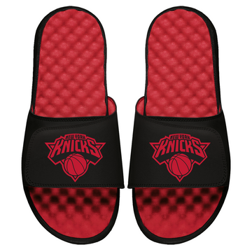 Official licensed product of the NBA. New York Knicks custom slide sandals.