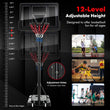 12-Level Adjustable Height: The height of this basketball hoop can be adjusted from 4.25 ft-10 ft (floor to rim height) to provide people of all age stages with basketball fun, such as kids, teenagers and adults. So this height adjustable basketball hoop allows your whole family to enjoy playing basketball in the next couple of years.