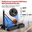 Convenient Ball Storage and Easy Mobility: The base features a groove as a place to hold the basketball during the break time. Built in 2 rolling wheels, this portable basketball system is easy to move and store after playing, which is suitable for indoor and outdoor places like gym, playground, backyard and driveway.