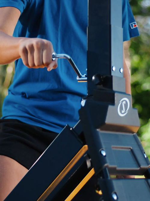 Adjustable Height: Crank lift system allows adjustment from 8' to 10' to suit all players.