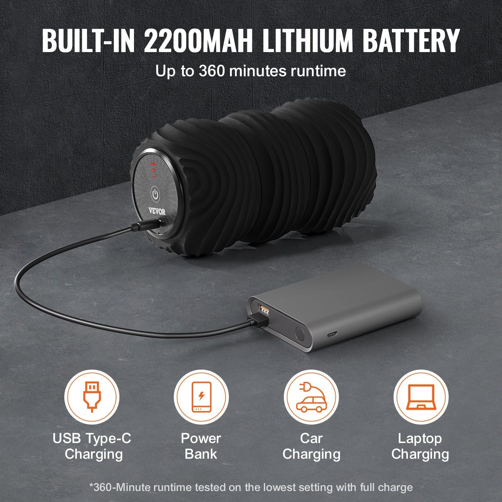 Convenient USB Charging: This silicone vibrating massage ball offers up to 300 minutes of use on the lowest setting, thanks to its 2200mAh battery. Recharge with a USB Type-C cable using any power bank, laptop, or wall outlet anytime, anywhere.